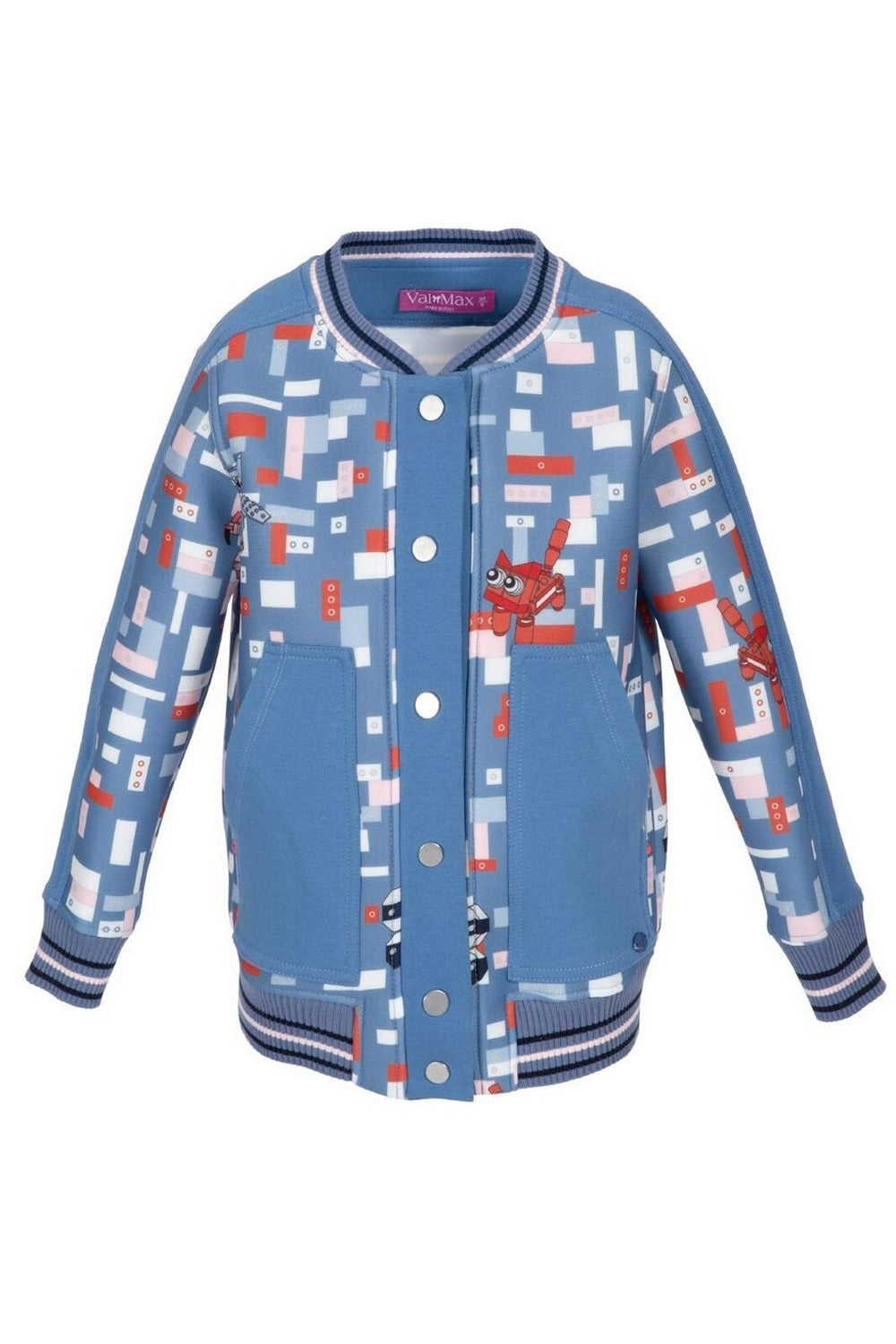 Patterned long-sleeved neoprene jacket with contrasting details, ribbed edges, front pockets and button fastening.