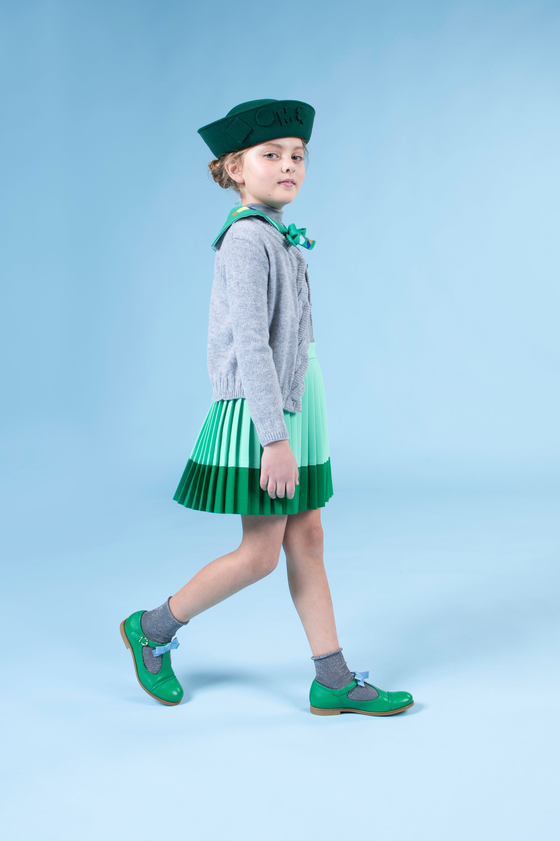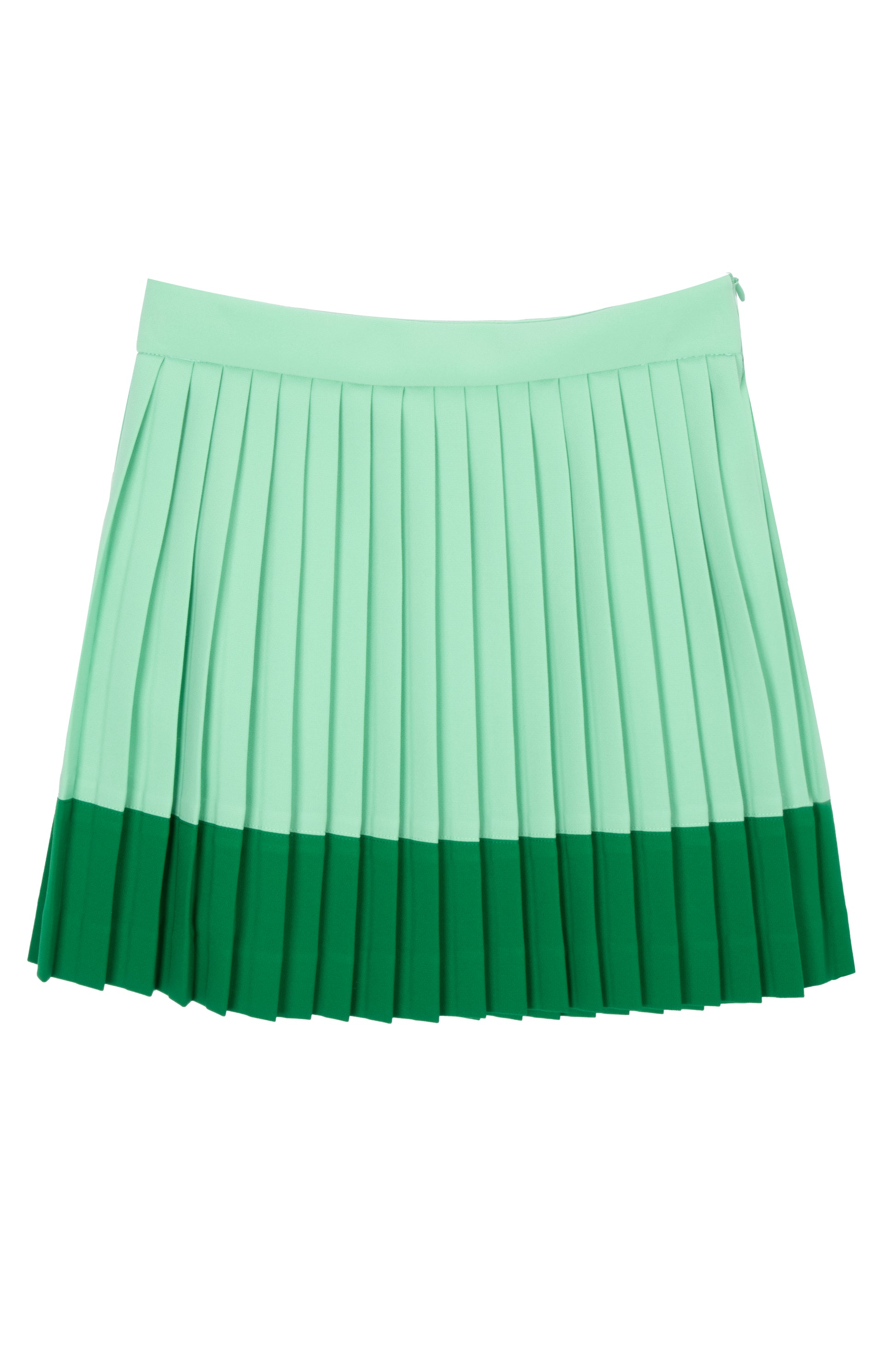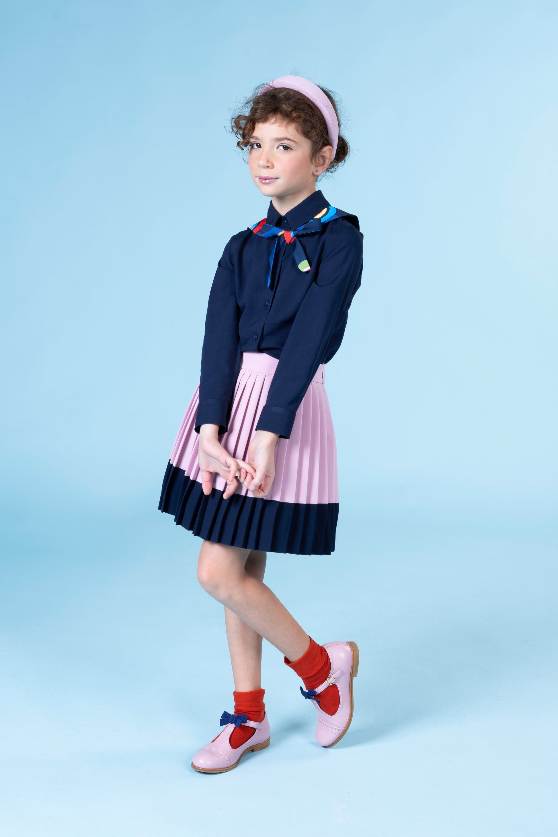 Delicata e raffinata, questa gonna plissettata bicolore unisce eleganza e freschezza in un capo intramontabile. Realizzata in tessuto fluido, presenta pieghe regolari che donano movimento e leggerezza. Il contrasto colore crea un effetto grafico sofisticato, ideale per completare look bon ton o più contemporanei. La chiusura laterale con zip invisibile assicura una vestibilità comoda e impeccabile.