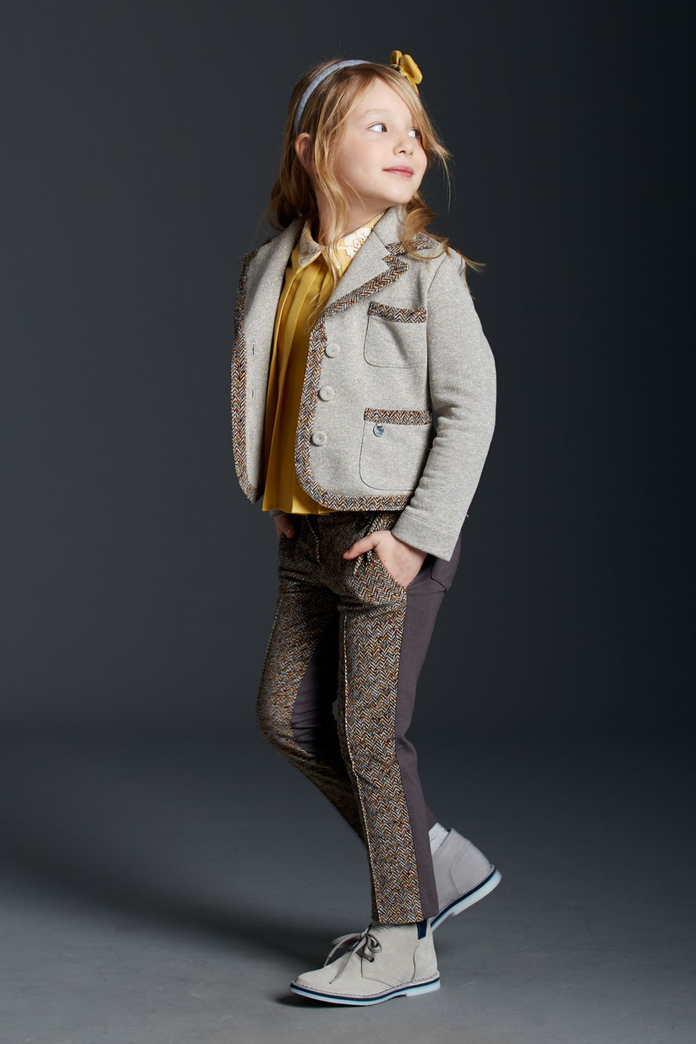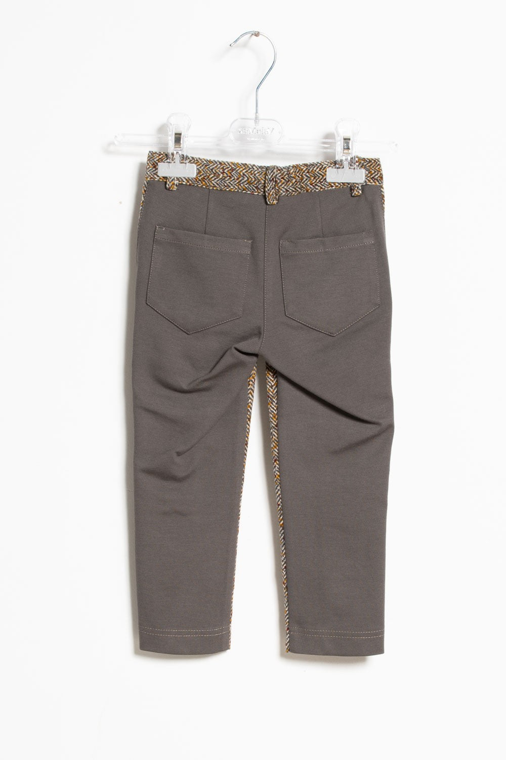 Long cotton trousers with tweed front.