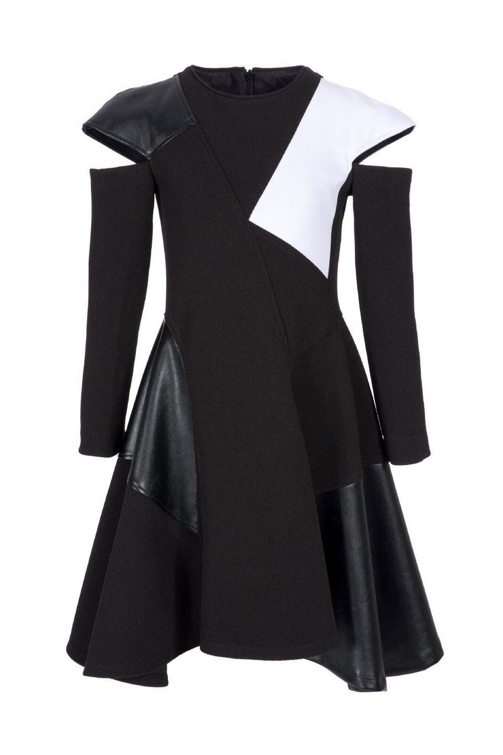 Abito in felpa con dettagli a contrasto in similpelle e manicotti.