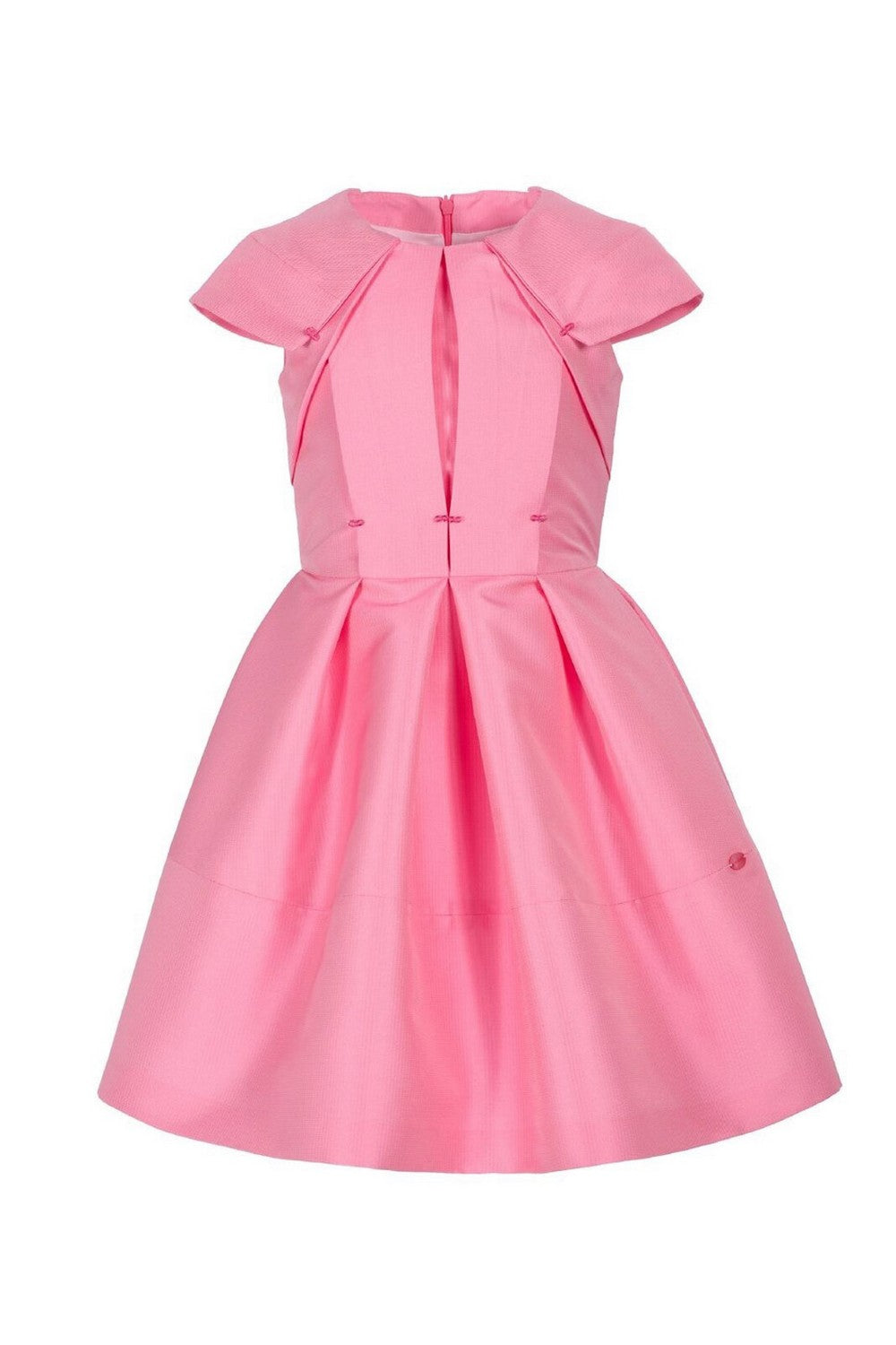 Abito a maniche corte con corpino impreziosito da perline, ampia gonna a pieghe e zip invisibile sul dietro.