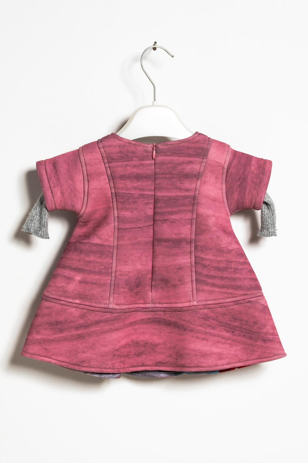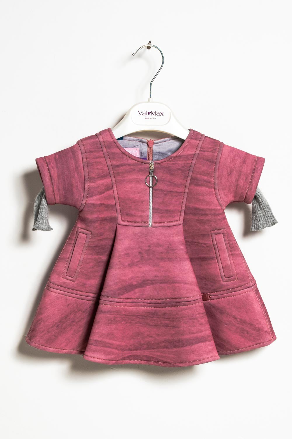 Abito in neopreneeffetto melange con maxi pieghe e maniche corte, mini maniche in jersey, zip e tasche frontali e zip invisibile sul dietro.