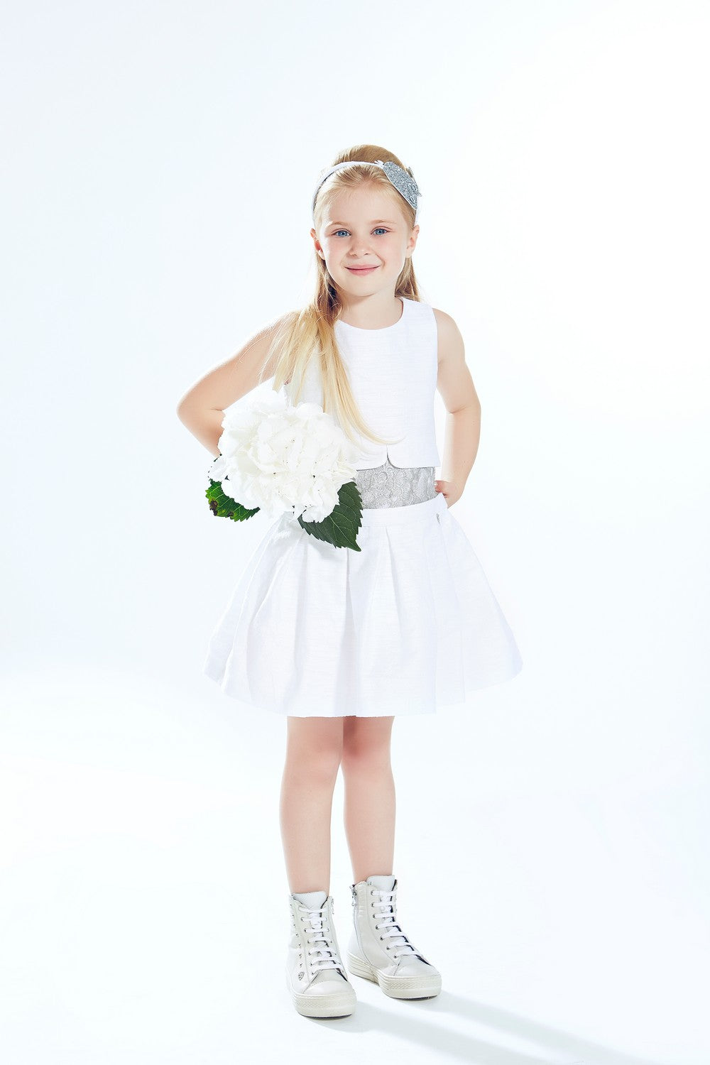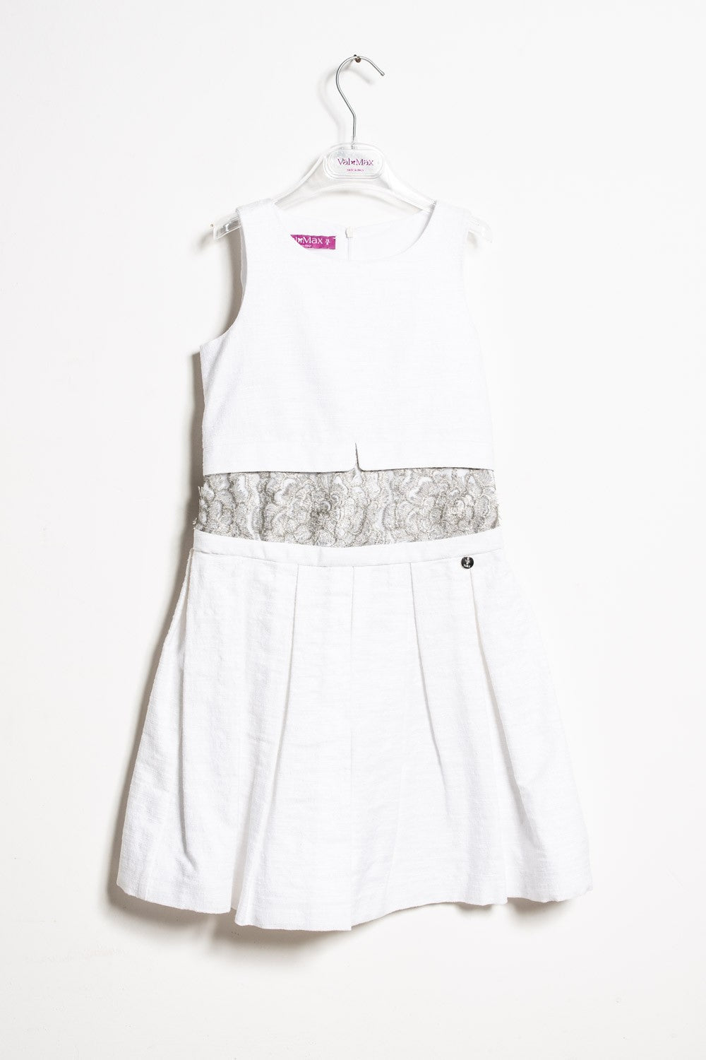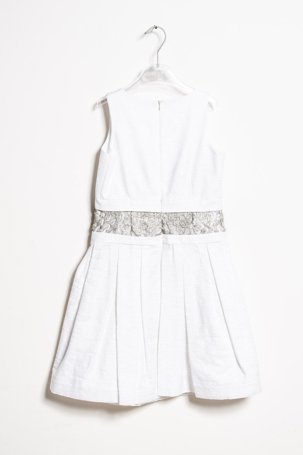 Abito smanicato con decorazione floreale ricamata in vita e zip invisibile sul dietro.