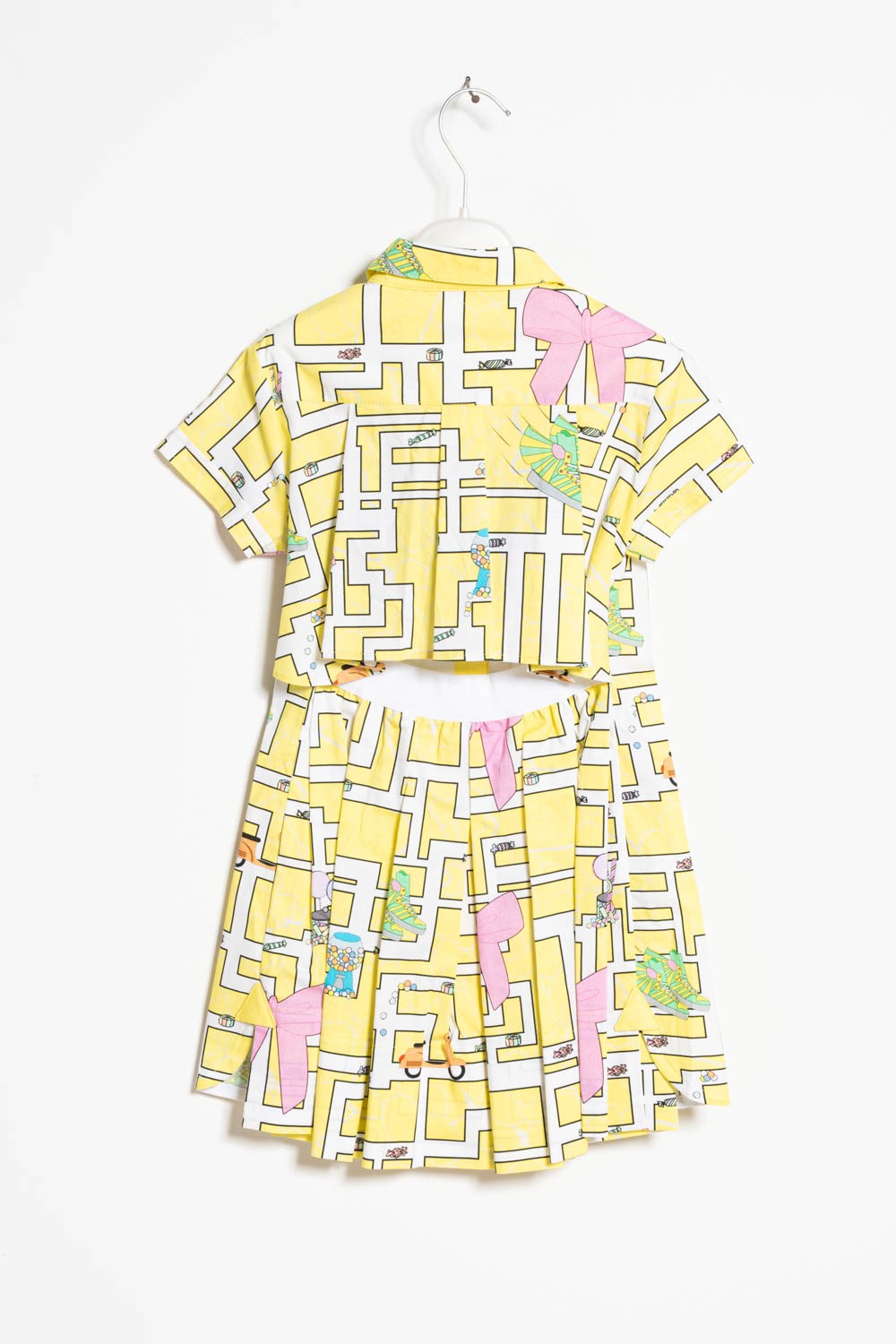 Abito a manica corta in cotone stampato con abbottonatura centrale e apertura sul dietro.
