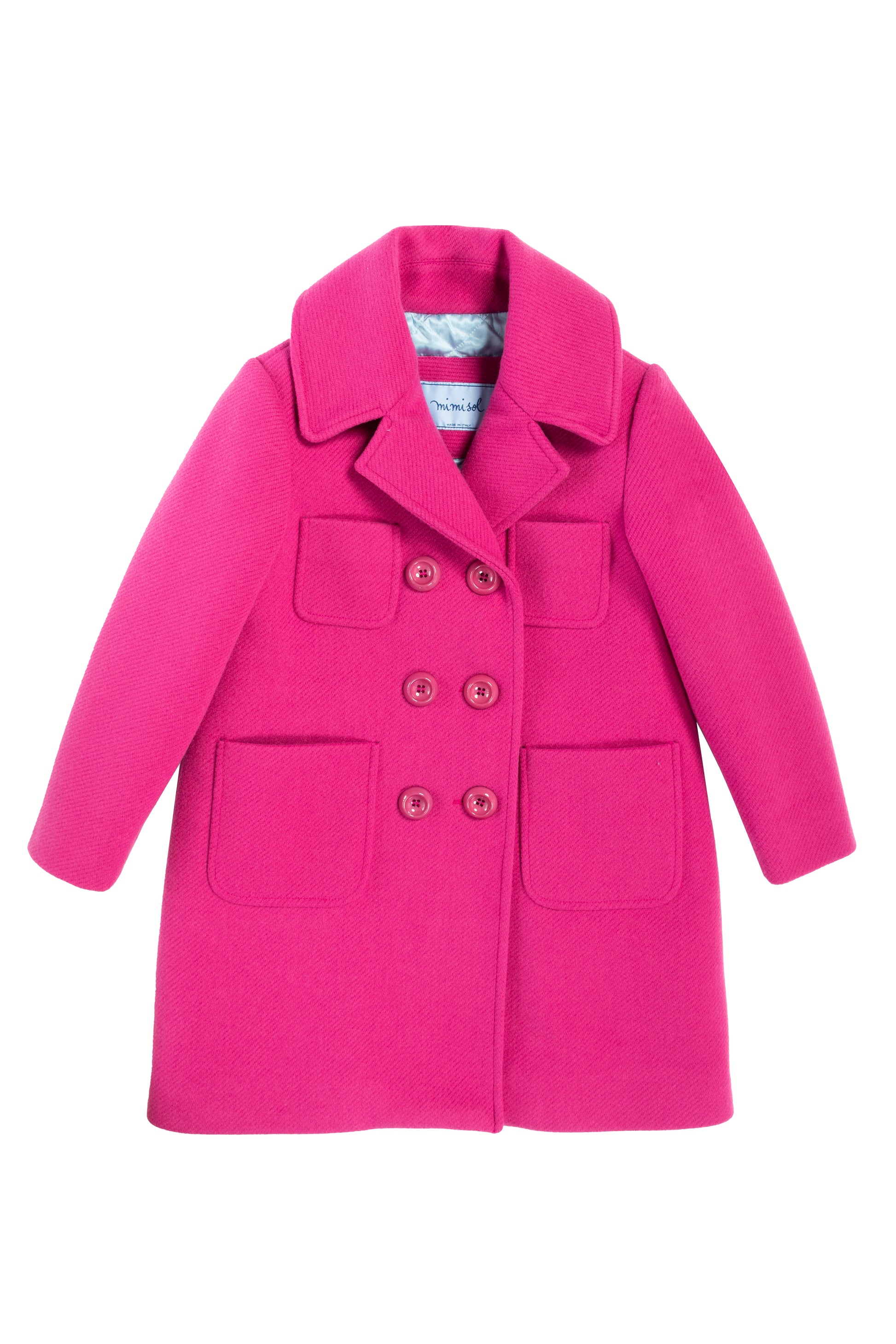 Cappotto elegante con chiusura doppiopetto e grandi tasche frontali. Morbido, caldo e dal taglio classico, dona un tocco vivace e raffinato a ogni look invernale.