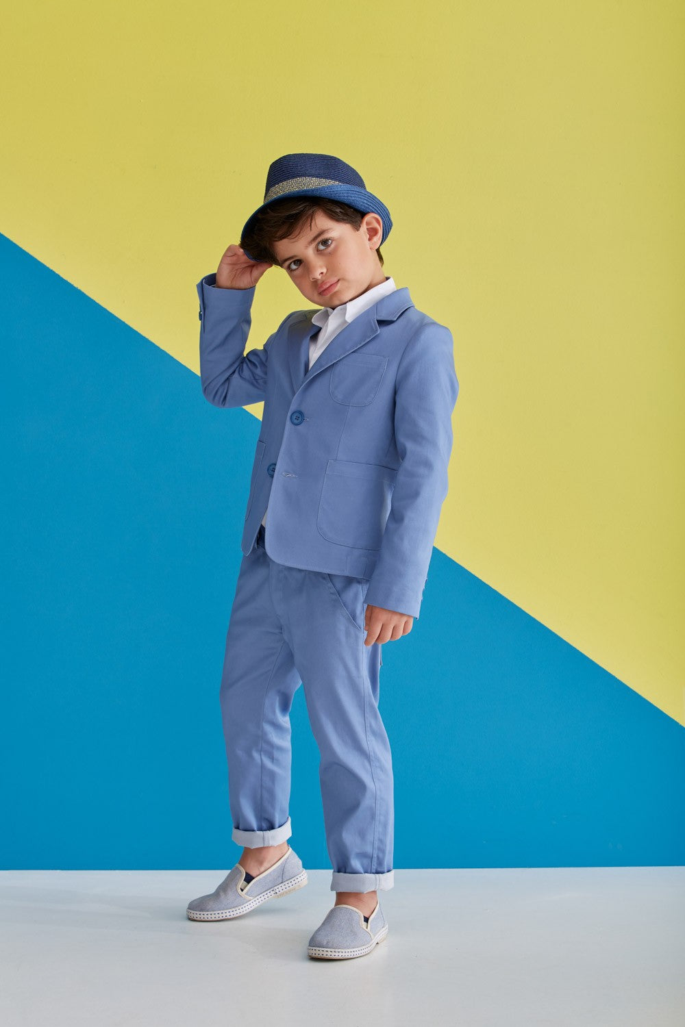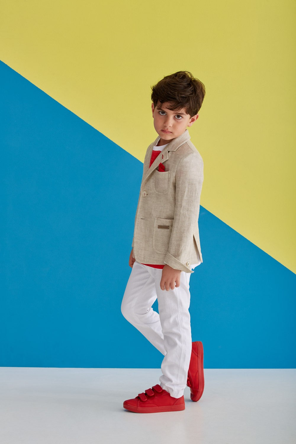 Giacca da bambino in cotone con collo a reverse e tasche frontali.