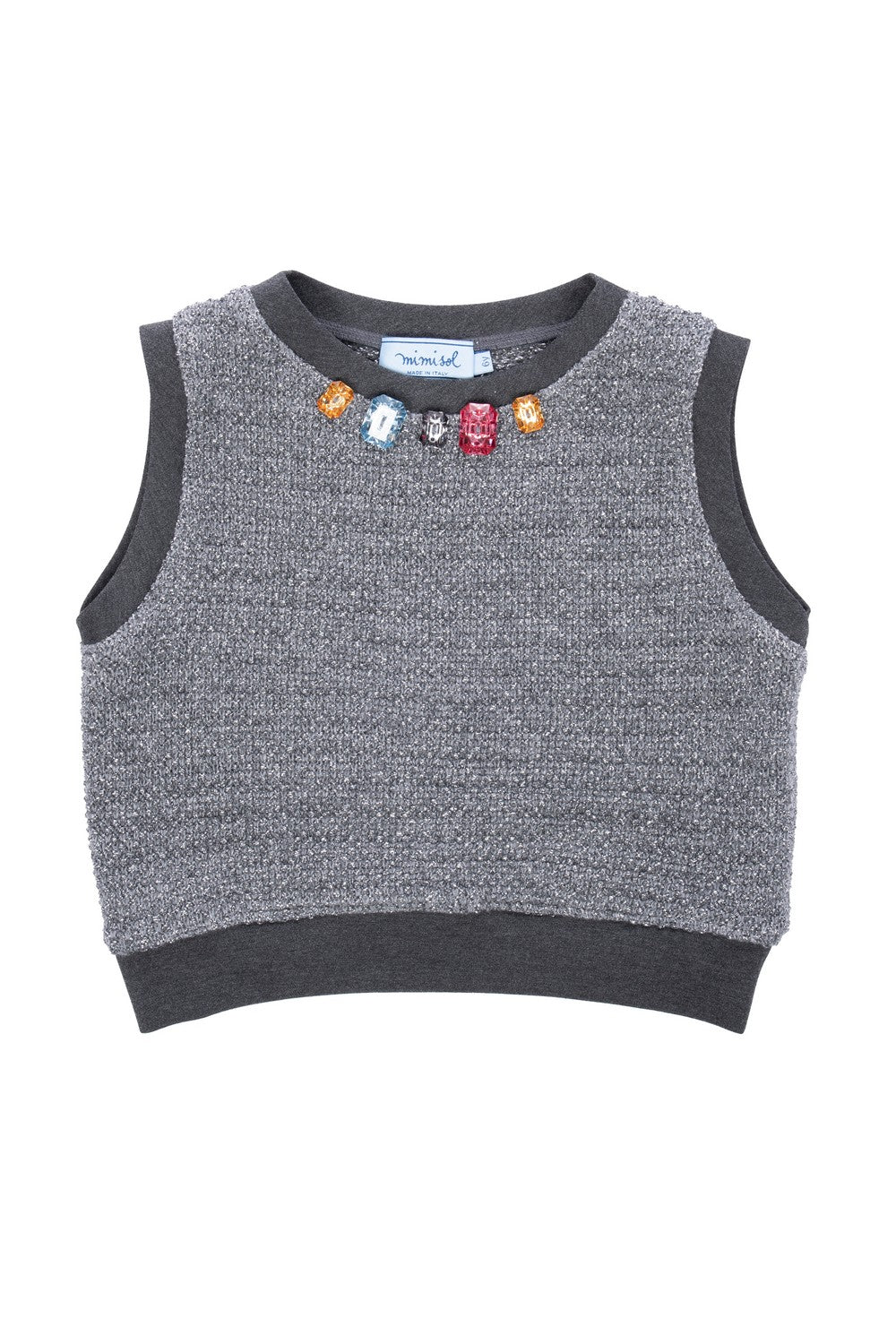 Gilet in maglia lurex da bambina con pietre gioiello ricamate
