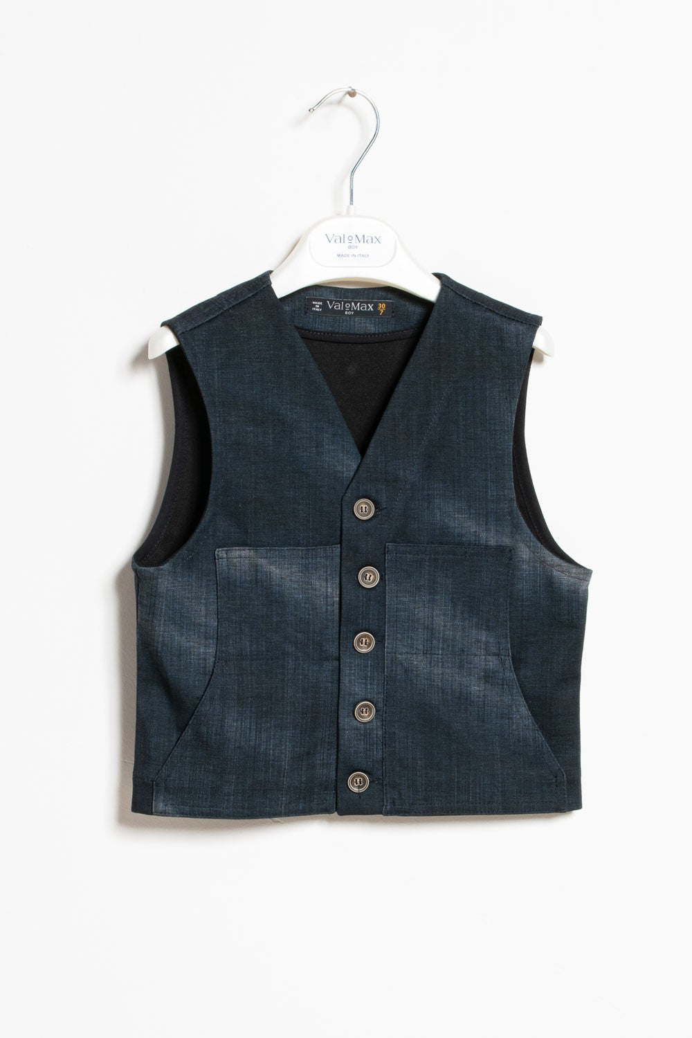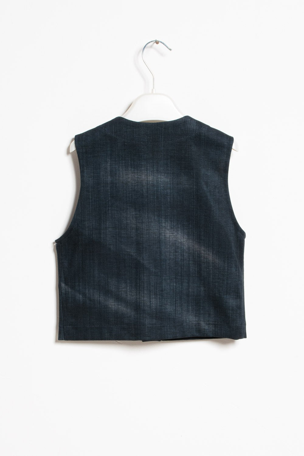 Gilet da bambino in tessuto con effetto denim con tasche frontali e bottoni a contrasto.