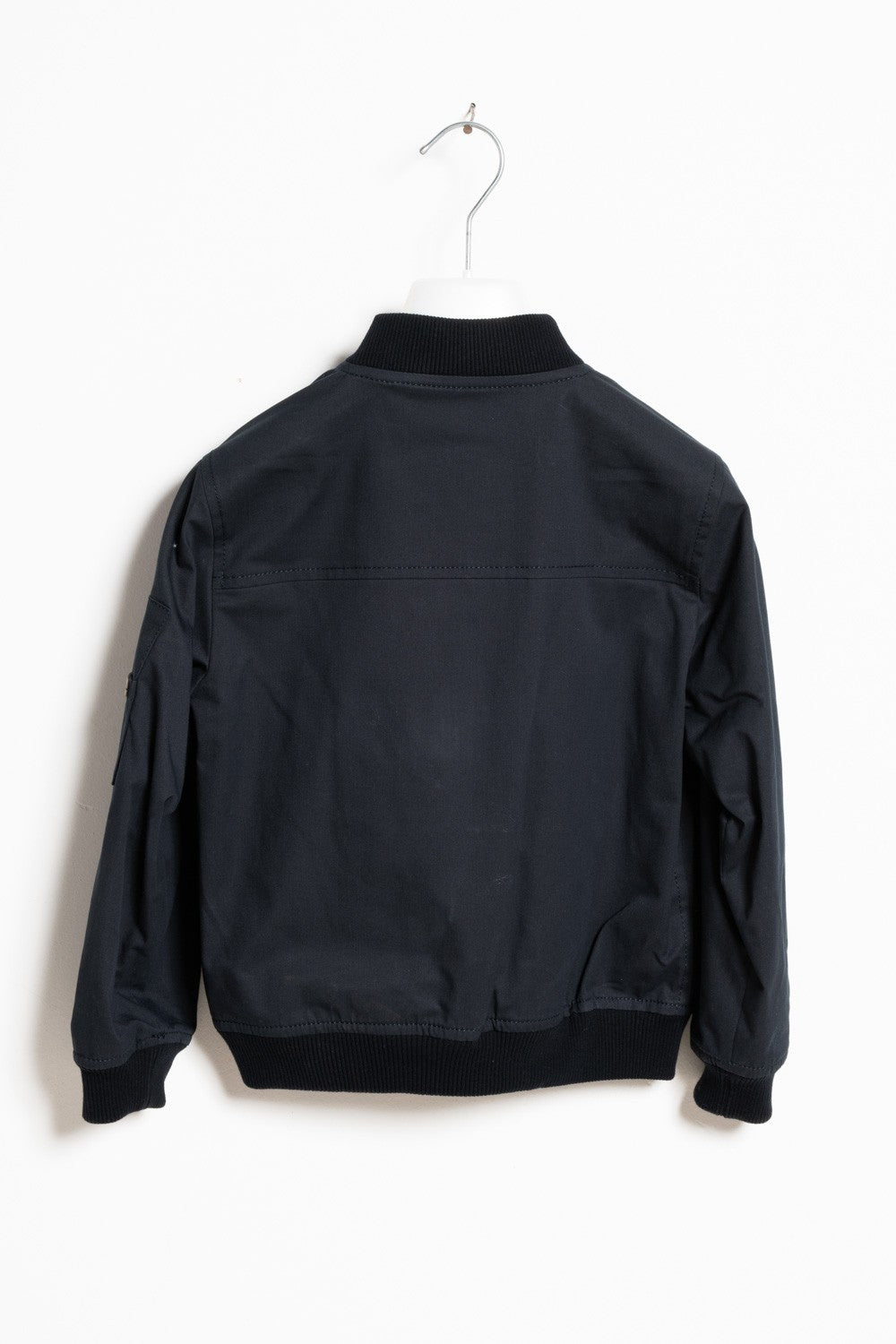 Giubbotto da bambino in gabardina con chiusura frontale con zip e orli elasticizzati a costine.