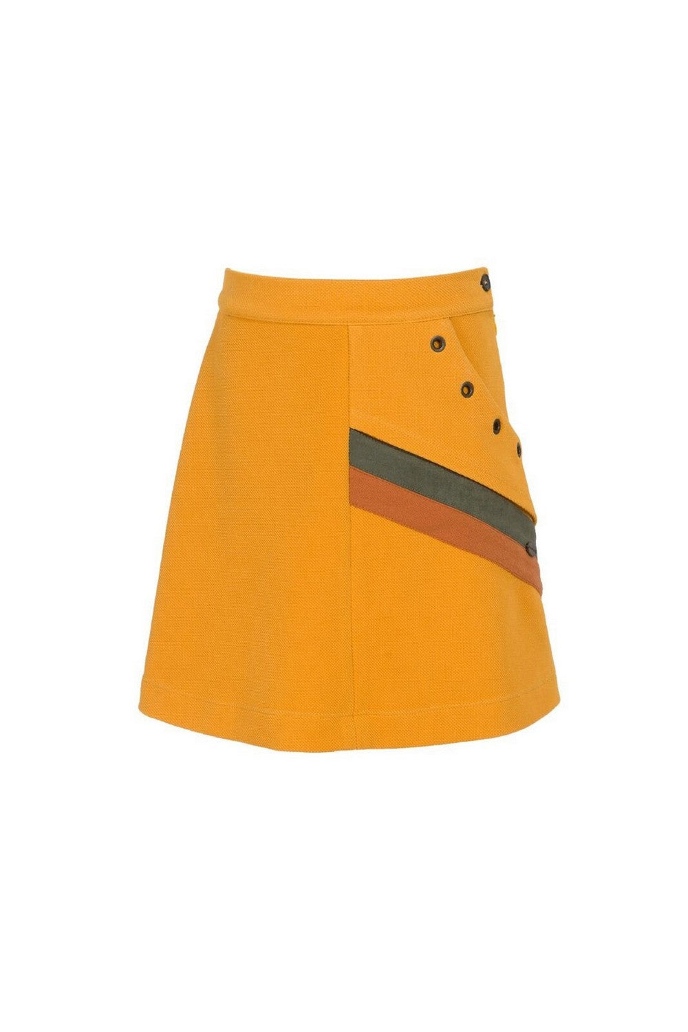 Gonna con dettagli a contrasto, mini occhielli e abbottonatura laterale.