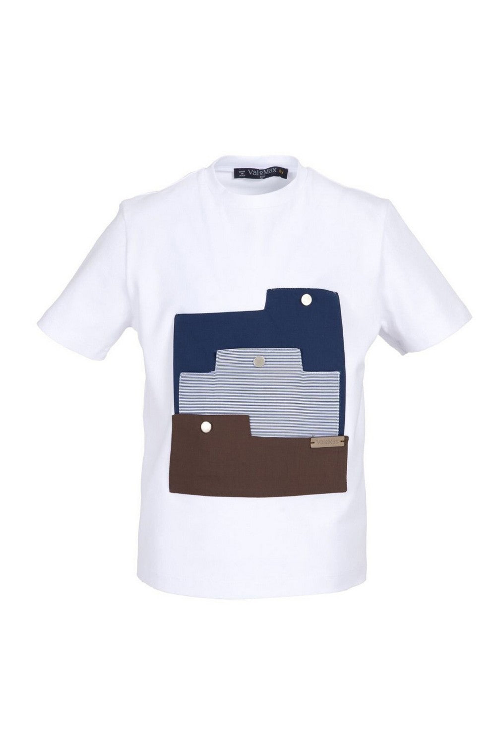 Maglia da bambino a maniche corte in popeline di cotone con dettagli a contrasto e borchiette.