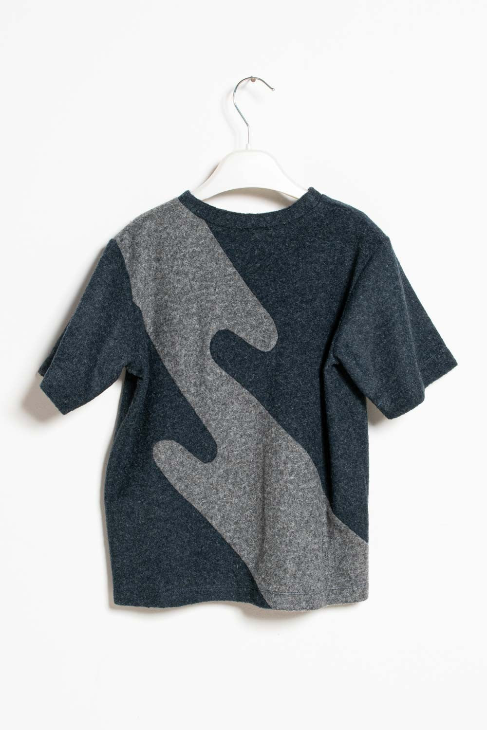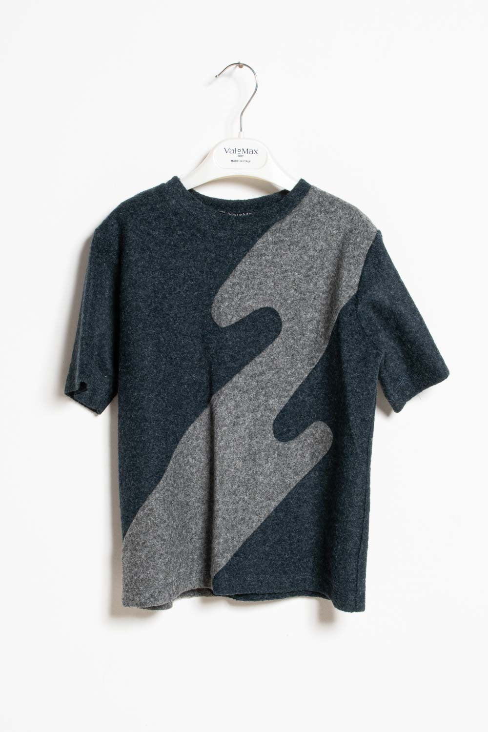 Maglione a manica corta con fantasia bicolor e scollo tondo.