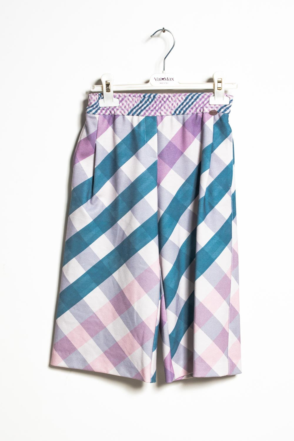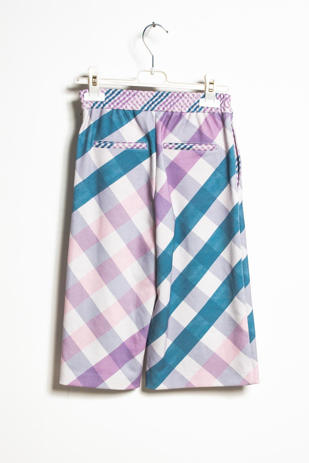 Pantaloni lunghi coulotte con fantasia a quadri, arricciati in vita con fantasia a quadretti.
