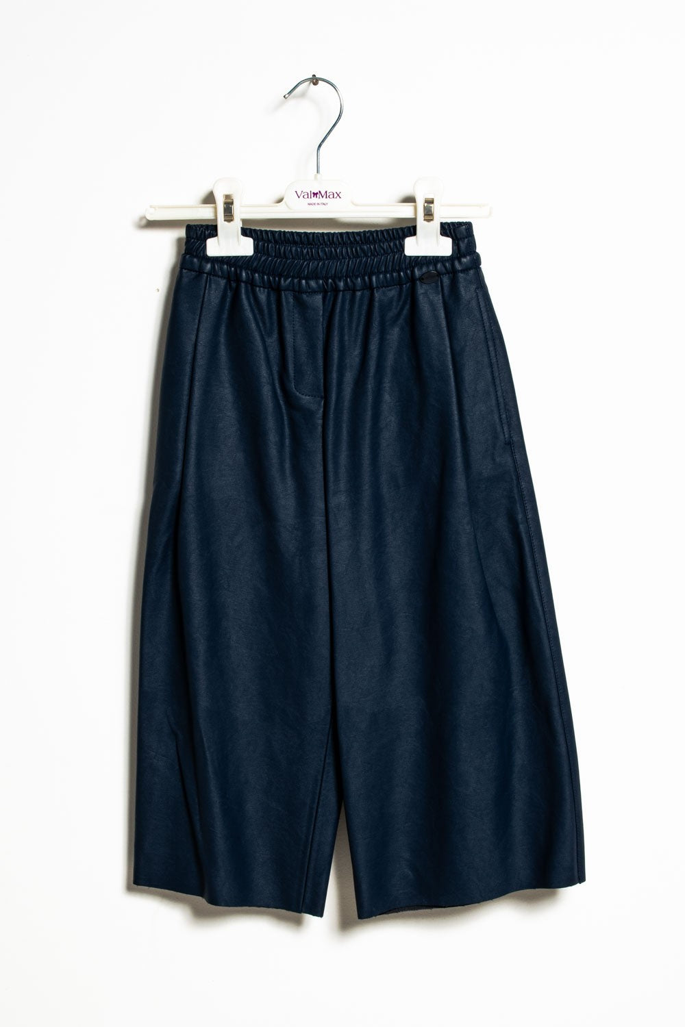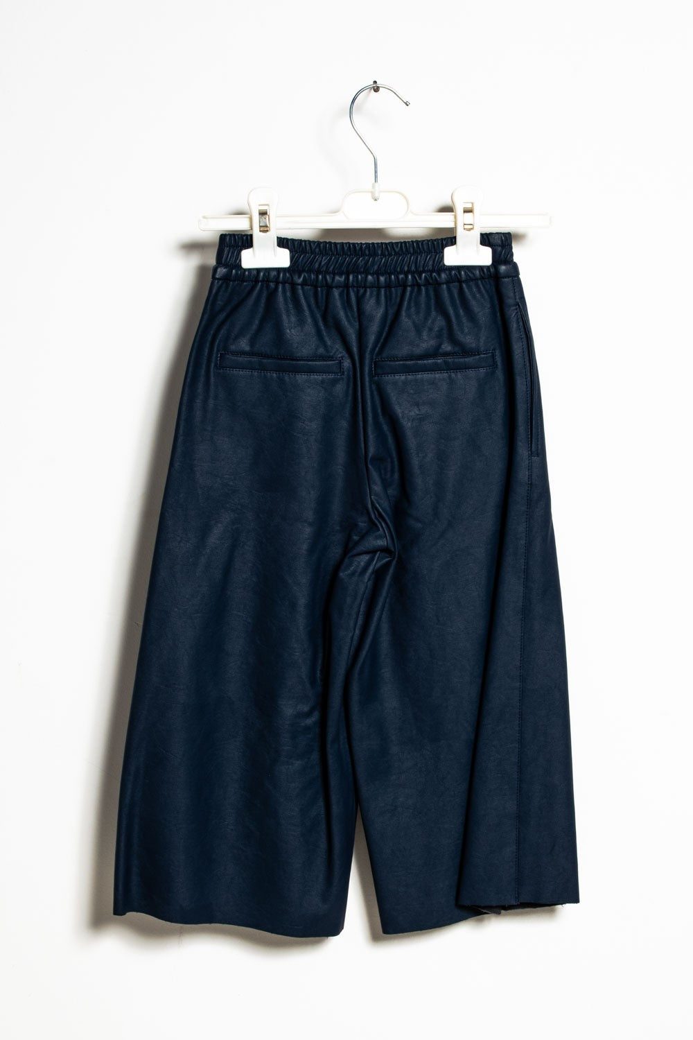 Pantaloni lunghi coulotte in simil pelle arricciati in vita e due tasche posteriori.