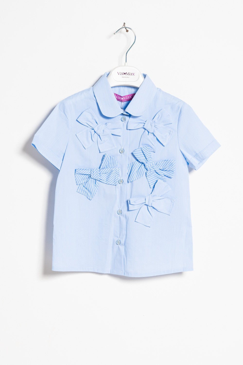 T-shirt a manica corta in popeline di cotone con simpatici fiocchetti applicati sul davanti e abbottonatura frontale.