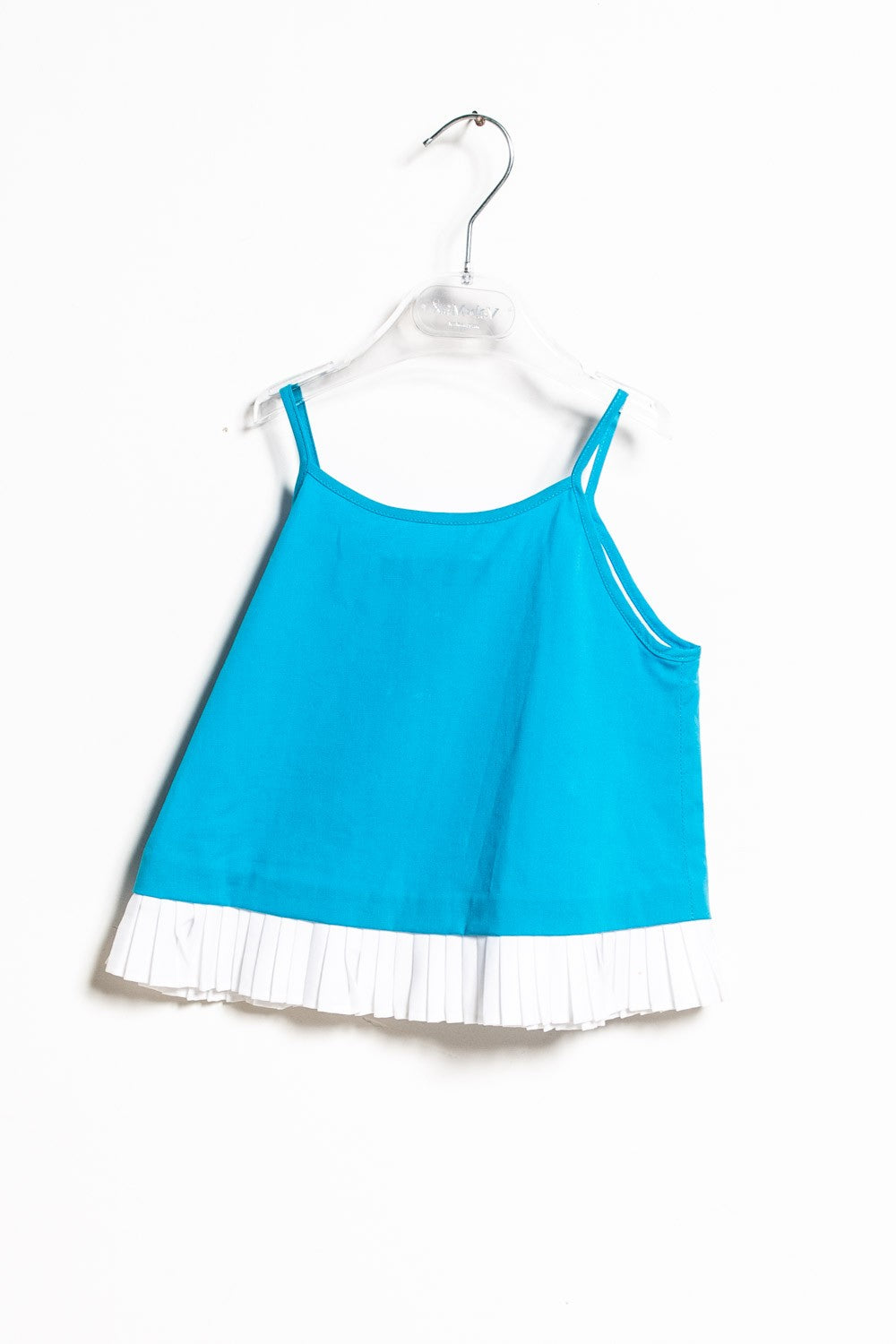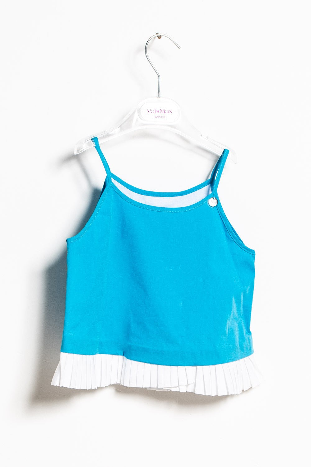 Top smanicato con spalline e bordo inferiore a pieghe.